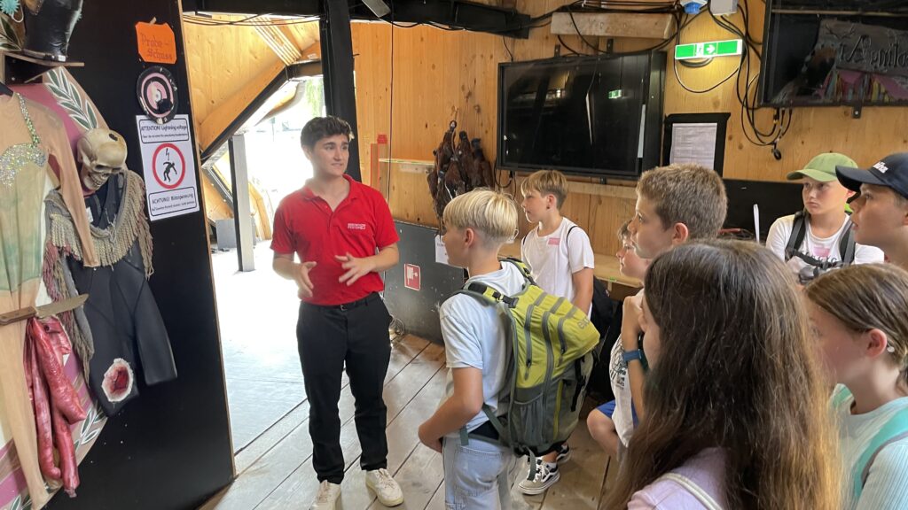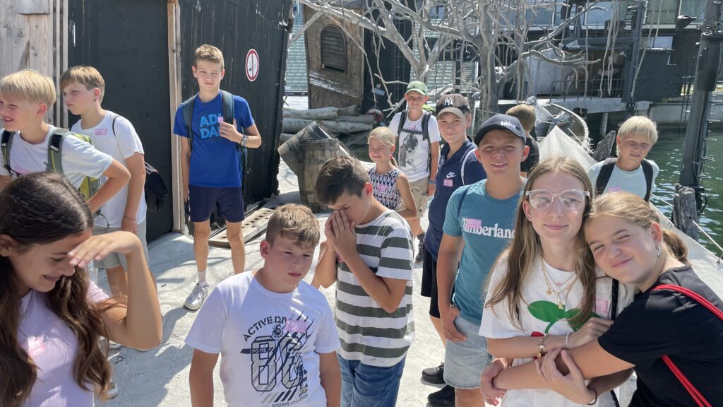 Taucher aus der Tiefe – Vor dem inneren Auge fiel man ins tiefe Becken und stellte sich vor, wie einen von unten plötzlich Arme hielten und zu einer Lucke hievten. Ein vier Meter tiefer Wasserschacht, in den manche Schauspieler während der Aufführung des Freischütz sich Tag für Tag haben fallen lassen müssen. Unser Guide konnte aber auch noch von anderen technischen Details der grössten Freilichtbühne der Welt berichten, bei denen mancher der 15 Kinder und Jugendlichen unserer Kirchgemeinde leuchtende Augen bekam. Sie erlebten beim Besuch der Seebühne in Bregenz einen aufregenden Nachmittag zu dem Joachim Gerber, unser Jugendarbeiter, am 16. August eingeladen hatte. Unterstützung fand er dankenswerterweise in Clara Blanke, einer unserer Jungleiterinnen. Weiterer Höhepunkt war zuvor sicher noch der Glace-schleckende Gang entlang der Promenade, auf dem schon die diesjährige «Schneebühne» in der Ferne zu erkennen war.
